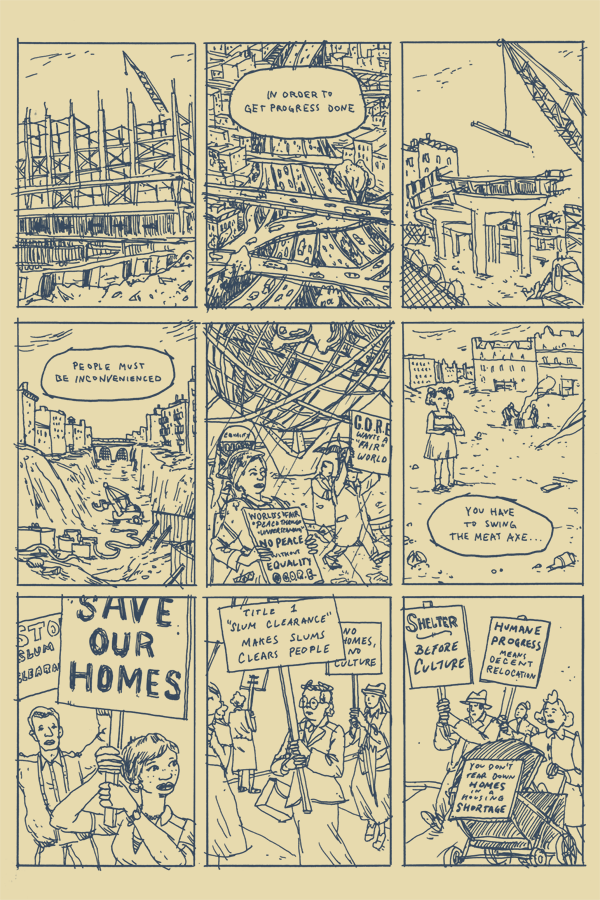 The Housing Act of 1949, exploited by Robert Moses, allowed private investors to raze areas designated as “slums” and relocate artistic institutions into a modern cultural center in order to establish cultural dominance after WWII. Displaced residents of San Juan Hill and Lincoln Square, mostly lower-income immigrants and people of color who were largely voiceless, were the collateral damage.