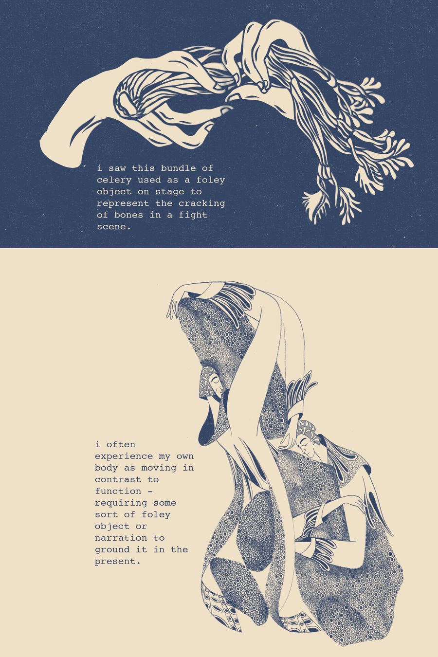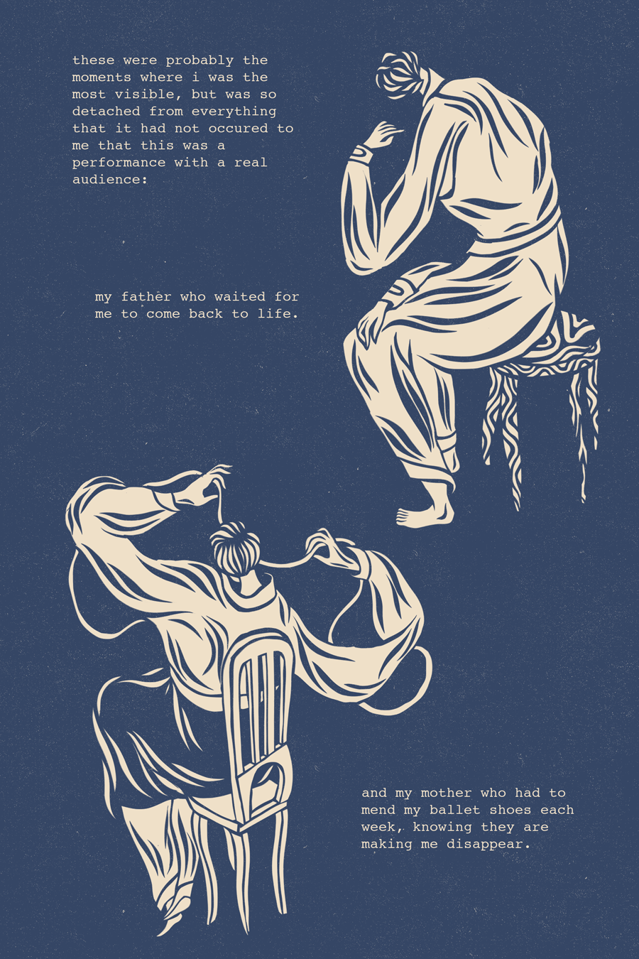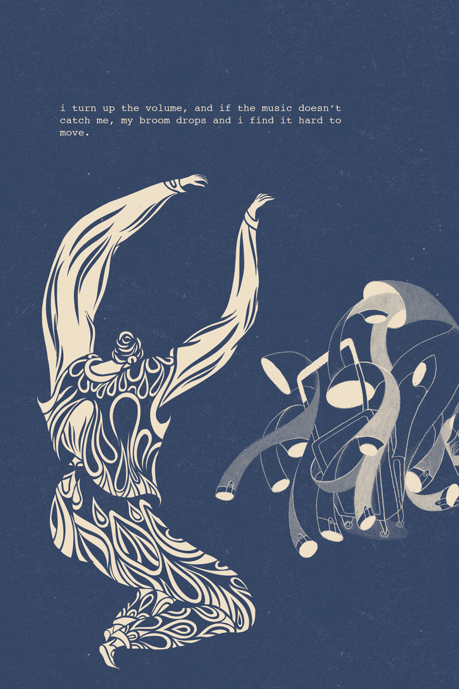 This comic begins with the utilitarian act of sweeping which unlocks the melancholy poetry of movement and dance. Keren Katz' singular artistic voice brought to bear on the complications of having a body, its usefulness, and how art can salve the soul.